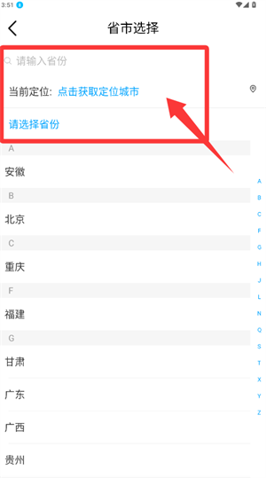 1、在地區選擇頁面,通過搜索或定位確定所在省市區劃。