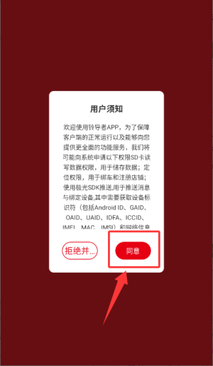 1、在用戶須知窗口點擊"同意",即可進入鈴導者應用主界面。