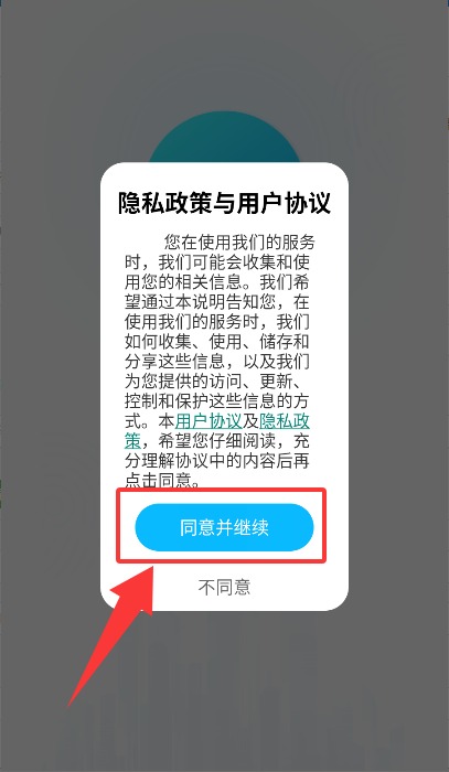 1、首次啟動應用程序時,請詳細閱讀相關服務協議與隱私條款,確認無誤后點擊“同意并繼續”按鈕進入功能界面。